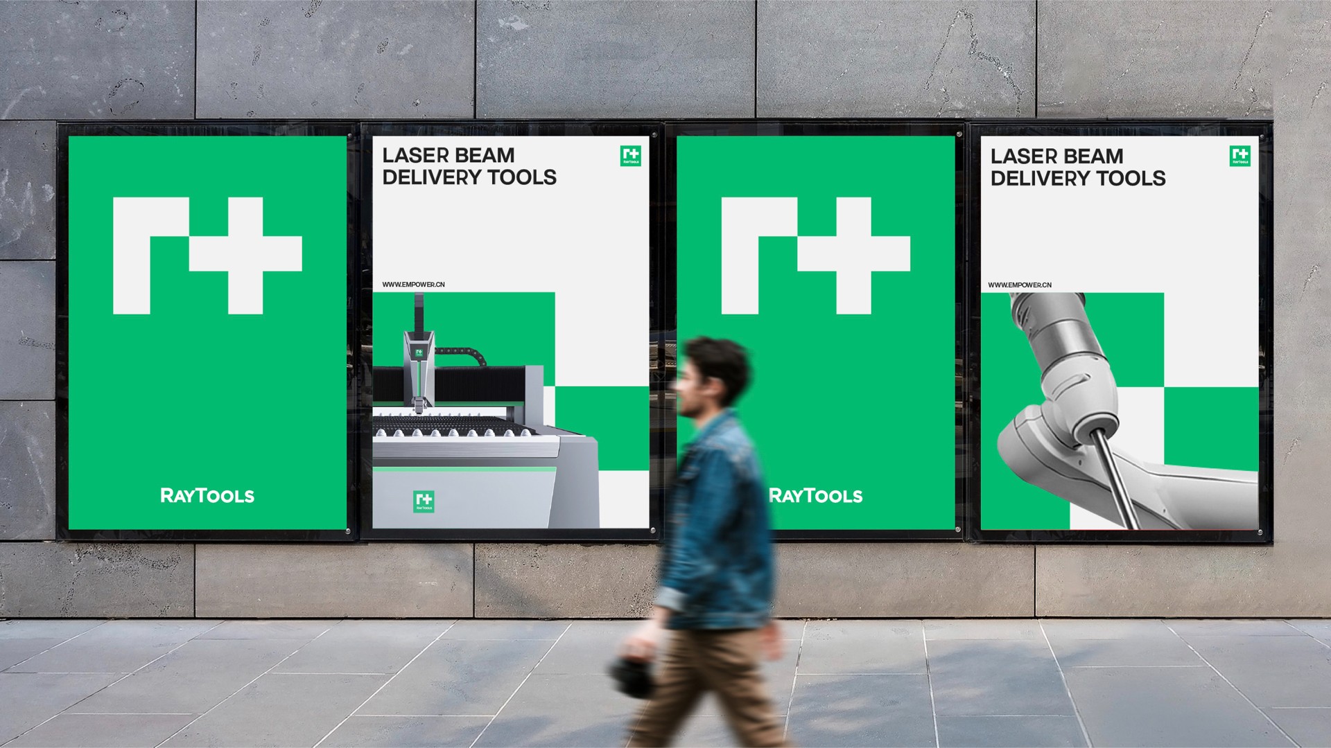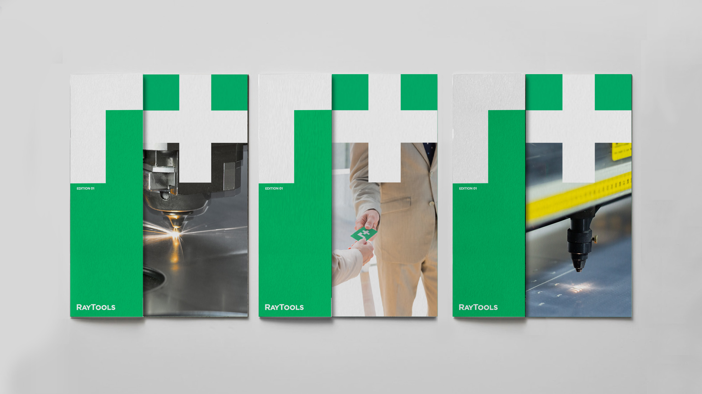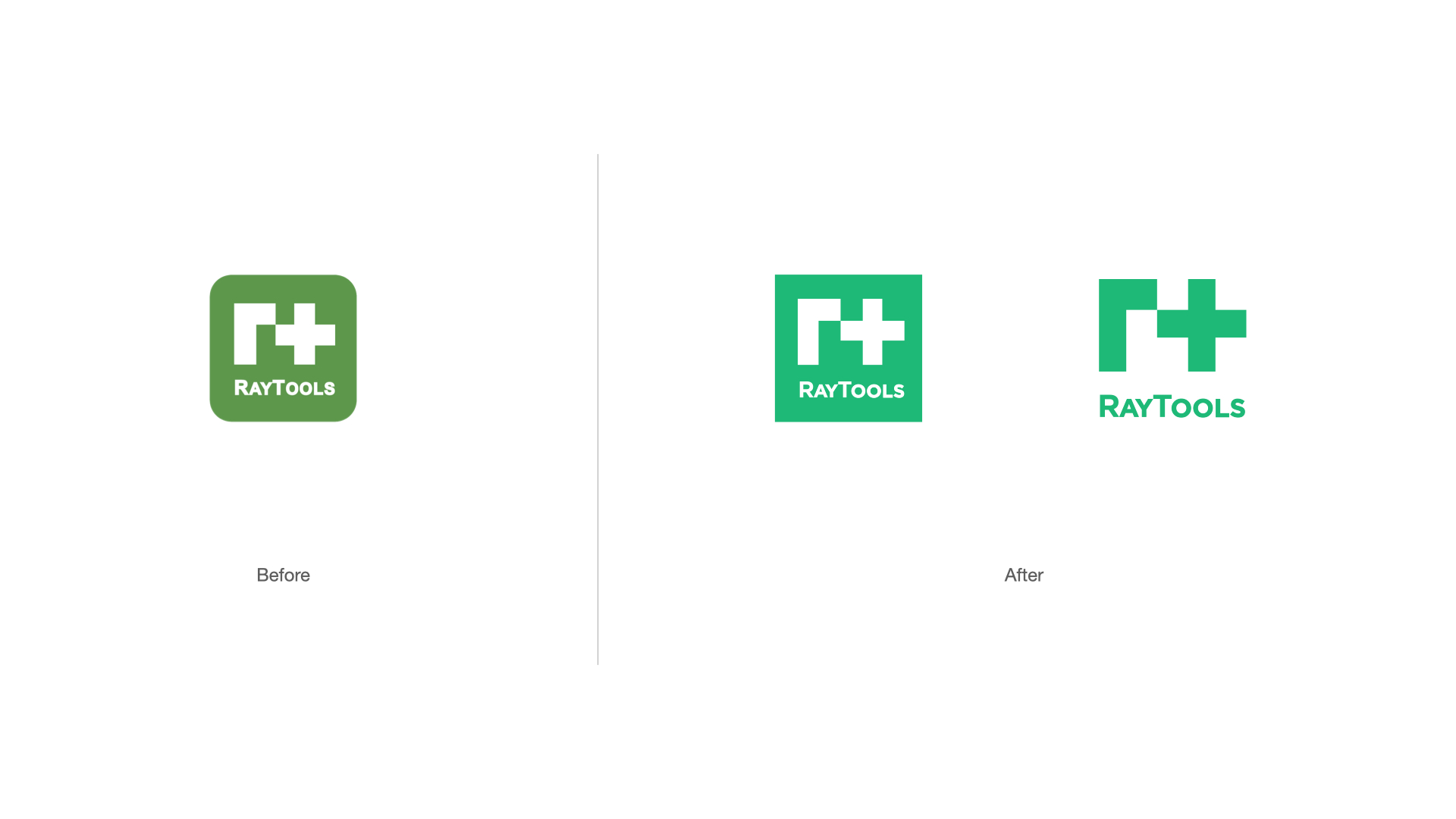 色彩是傳遞品牌概念印象的最直接的方式,也是品牌識別重要要素之一。我們通過在保留原品牌綠色的基礎上,提煉出專屬RayTool綠色,使其具備專業感的同時且更易被受眾識別與記憶。