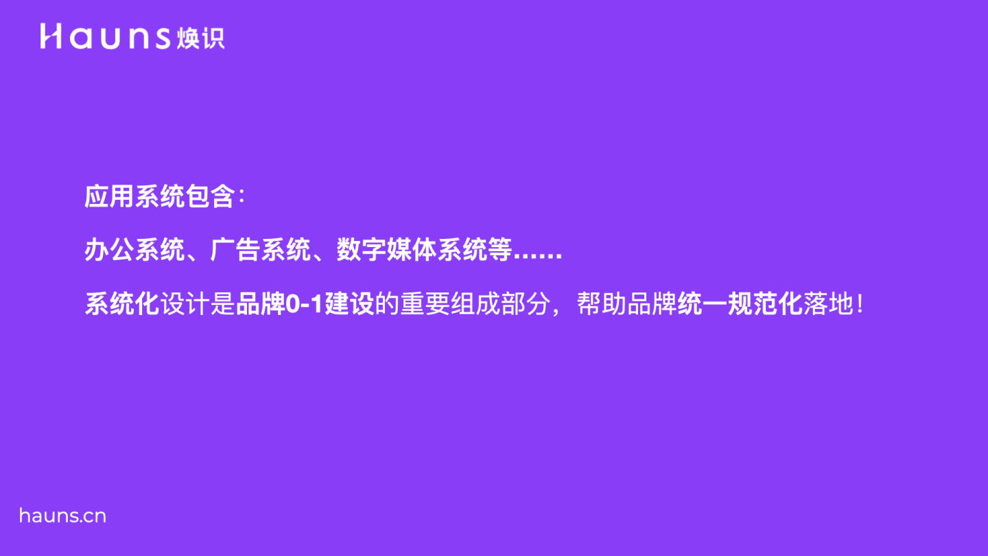 Hauns煥識是一家創(chuàng)意策略思考導(dǎo)入型的品牌成長咨詢公司,我們擁有寬闊的國際視野,以創(chuàng)意策略性思維導(dǎo)入品牌內(nèi)部,通過調(diào)研分析、策略定位、品牌設(shè)計等專業(yè)核心能力,構(gòu)建由內(nèi)而外完整的品牌體系,用專業(yè)的服務(wù)為品牌注入活力,幫助您的企業(yè)實現(xiàn)真正地品牌成長,煥然一新品牌識別形象!