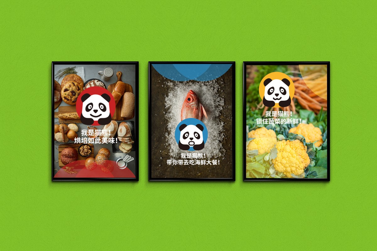 解決方案:煥識品牌設(shè)計整合了熊貓生鮮vi設(shè)計的品牌訴求,通過前期生鮮vi設(shè)計案例,蔬菜logo設(shè)計案例,超市l(wèi)ogo設(shè)計案例,農(nóng)業(yè)電商logo設(shè)計案例,農(nóng)產(chǎn),菜場logo設(shè)計案例等生鮮品牌設(shè)計的趨勢分析,充分抓住生鮮品牌定位的空缺區(qū)域,結(jié)合市場現(xiàn)狀的分析調(diào)查定義出熊貓生鮮的新定義“新鮮的美好生活”,與競爭對手品牌形成差異化區(qū)隔。從大而全的傳統(tǒng)生鮮菜場轉(zhuǎn)型為小而美的精品冷鏈生鮮品牌,幫助貓熊生鮮品牌從生鮮品牌定位到生鮮品牌設(shè)計的梳理與建立。